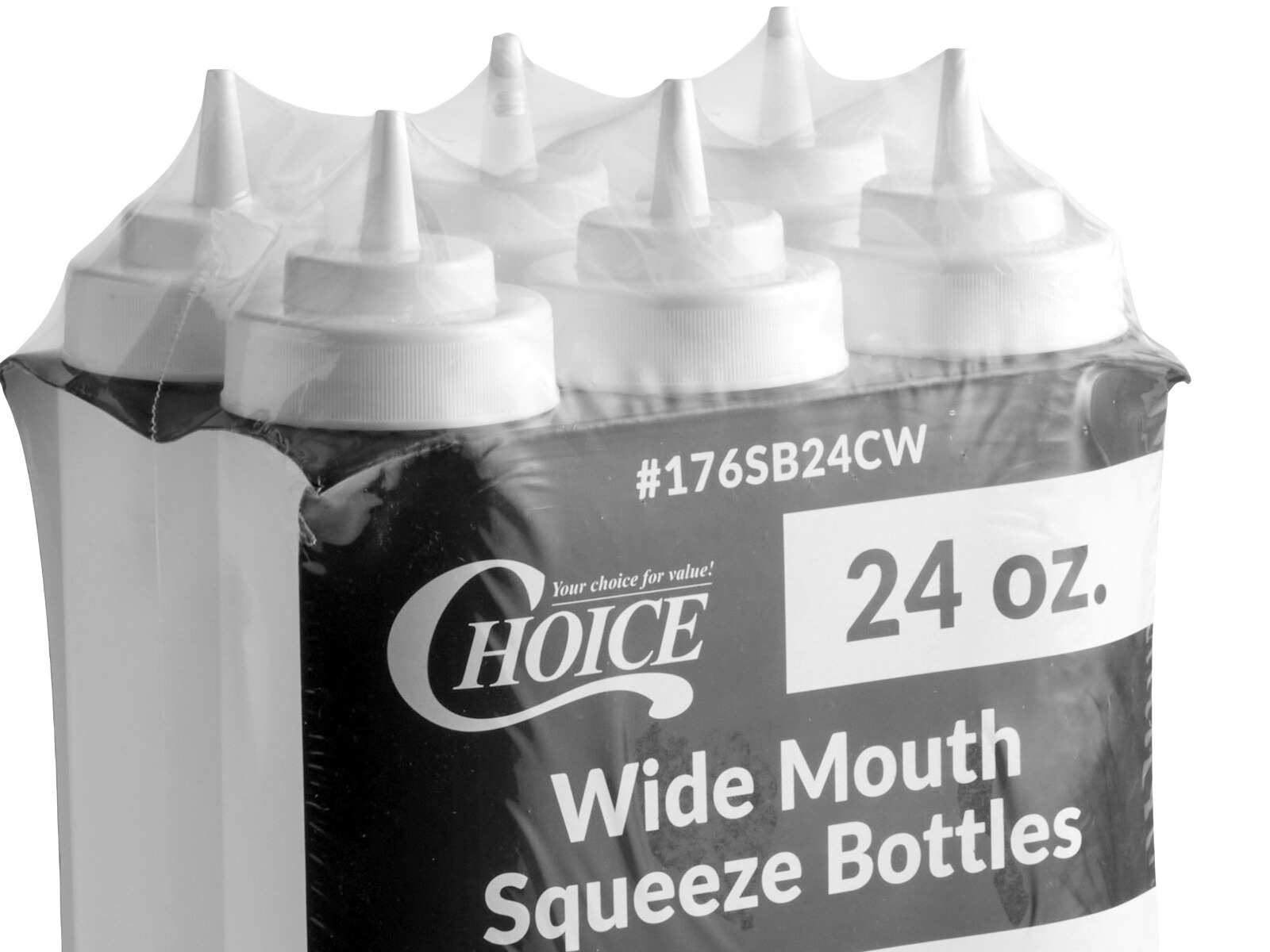 Choice 24 oz. Clear Wide Mouth Squeeze Bottle - 6/Pack