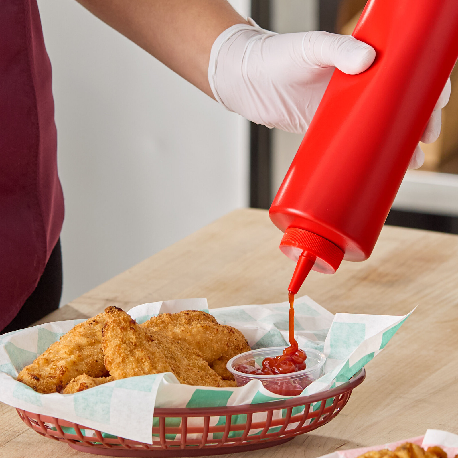Finish off your signature burger or fried fish sandwich with this Choice 24 oz. red squeeze bottle.