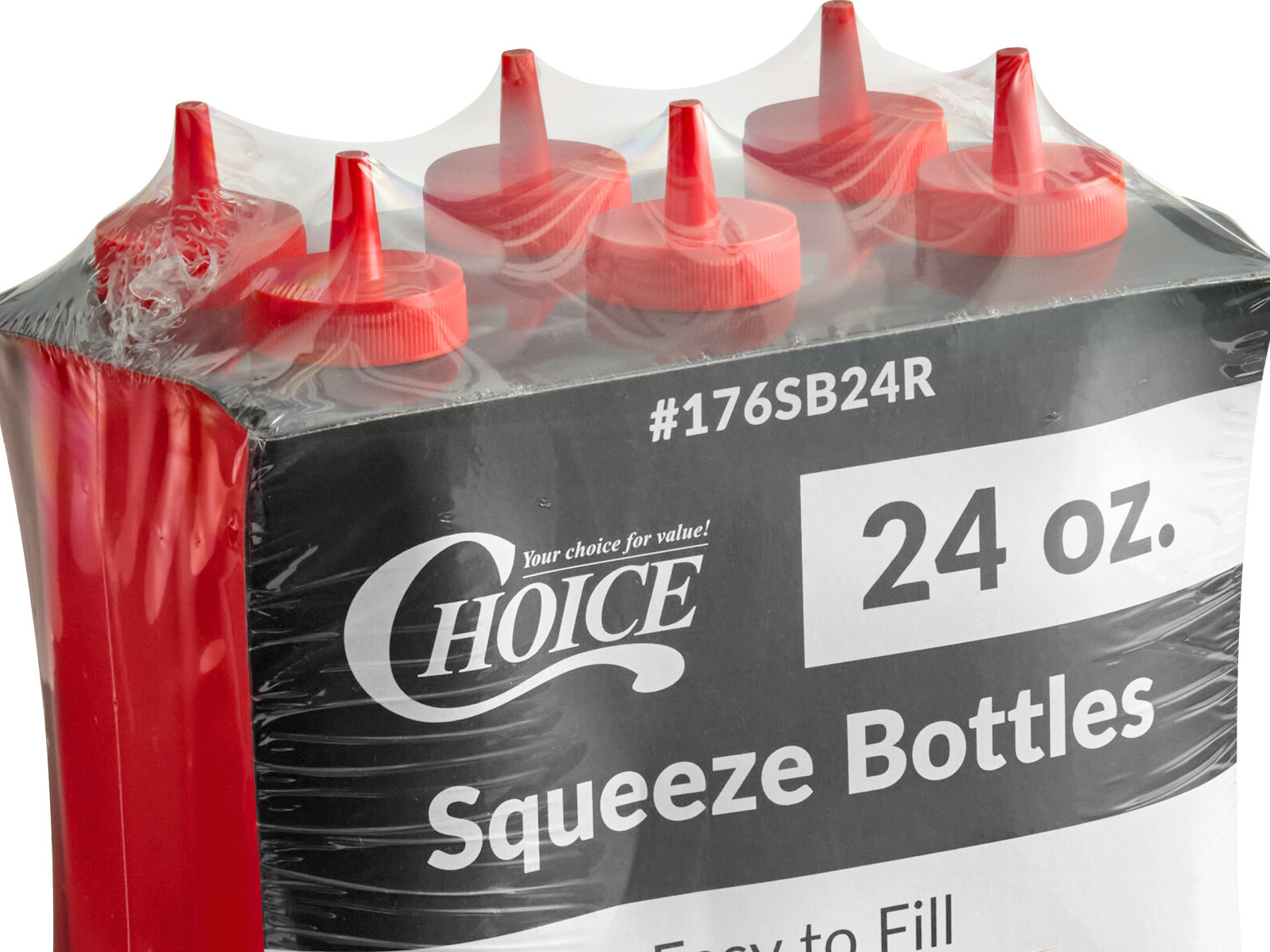 Choice 24 oz. Red Squeeze Bottle - 6/Pack
