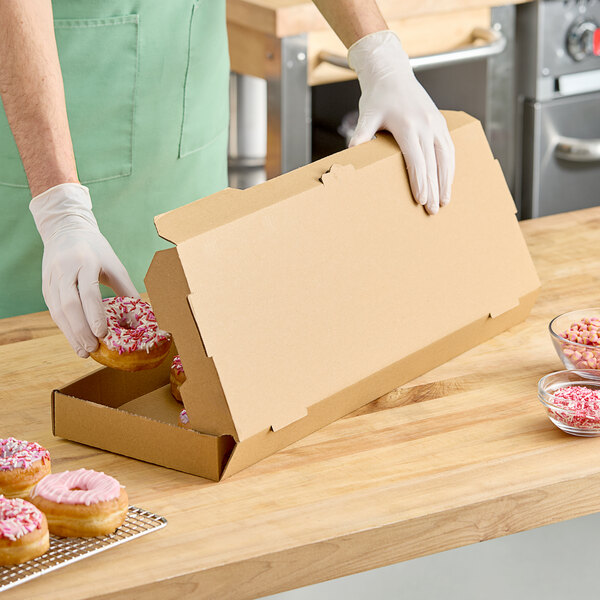 This kraft corrugated plain bakery box is a perfect addition to your restaurant or bakery, perfect for transporting cookies, desserts, and other bakery items. It features a durable B-flute corrugated construction, so you can trust that your box won't warp and your baked goods will stay warm.