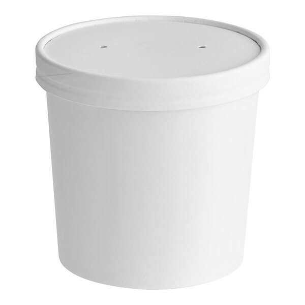 Choice 26 oz. White Double Poly-Coated Paper Food Cup with Vented Paper Lid - 250/Case