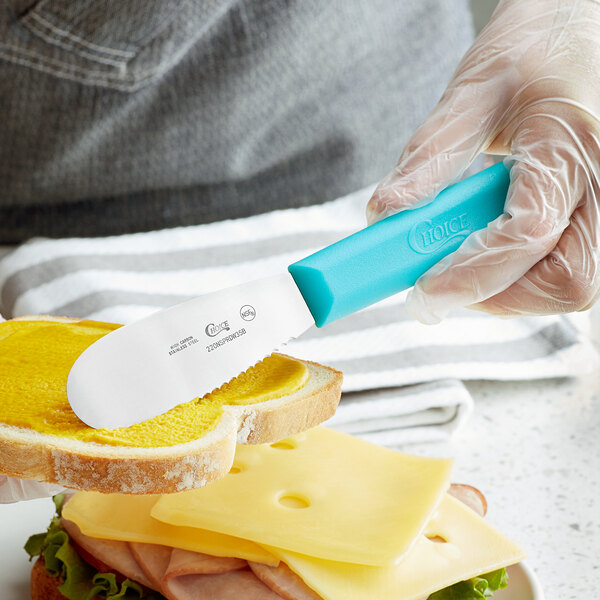 Featuring a bold neon blue color, this spreader is an ideal addition to your color-coded kitchen operation and can be especially designated for certain condiments or spreads based on its color.