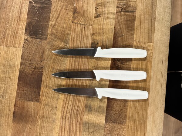 The choice 3 1/4 white serrated pairing knife is my favorite so far, the light weight design and grip is unmatched for its low price. Definitely recommend for fruits and veggies!