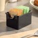The plastic construction makes for a durable and easy-to-clean product, and the simple yet sleek black design makes this caddy versatile. Place it on your tabletops to store sugar packets, behind your register to hold receipts and tickets, or in your office to sort miscellaneous supplies.