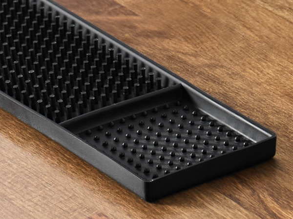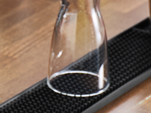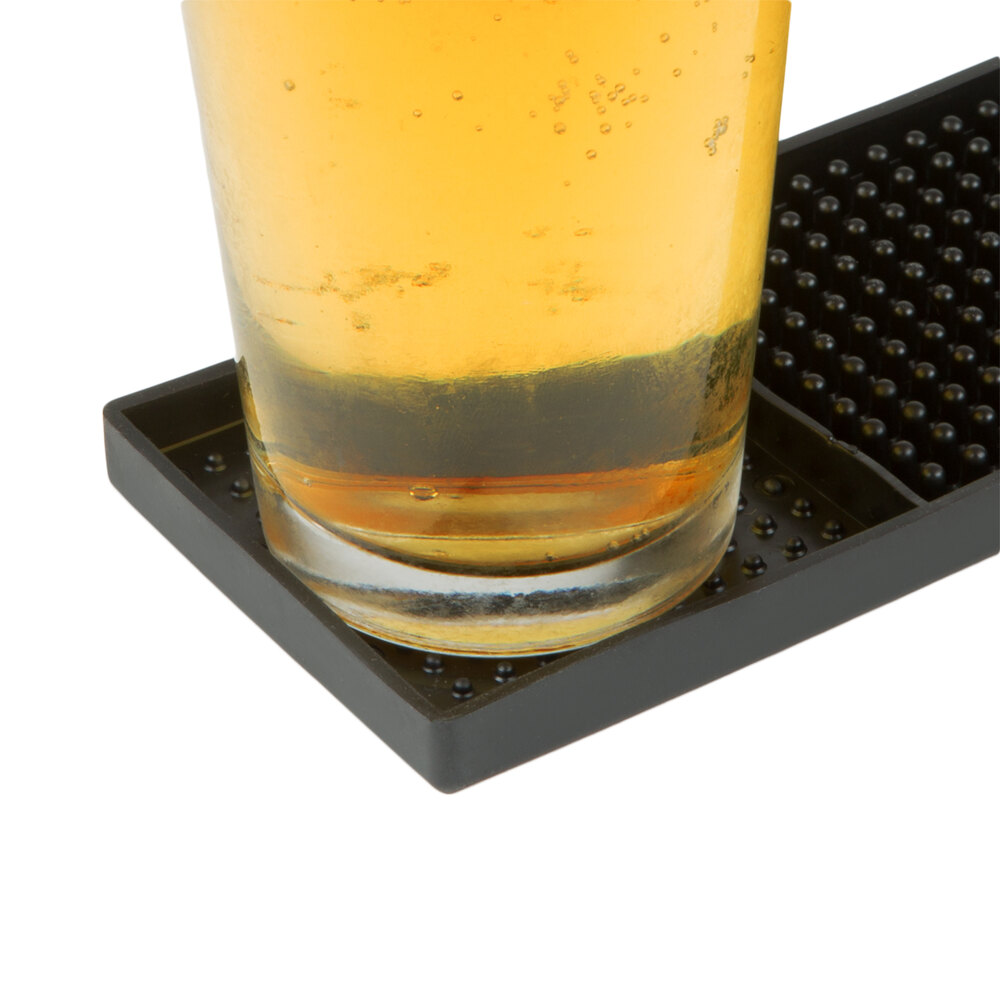 Made of non-skid thermoplastic rubber, this durable bar mat keeps your glassware secure on the bar's serving rail. The mat works to decrease potential chipping of your drinkware and reduce the amount of accidental breakage in the fast-paced environment of your busy venue.