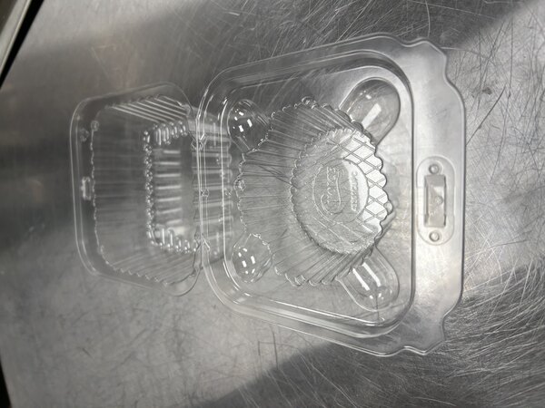 Send your delectable muffins home with your customers with this Choice 3-compartment clear PET plastic jumbo muffin container. This muffin container is designed to hold three jumbo muffins. Use it at your bakery, restaurant, or grocery store. The clear PET plastic is lightweight and offers optimum visibility of your baked goods to increase impulse sales without needing to lift the lid.