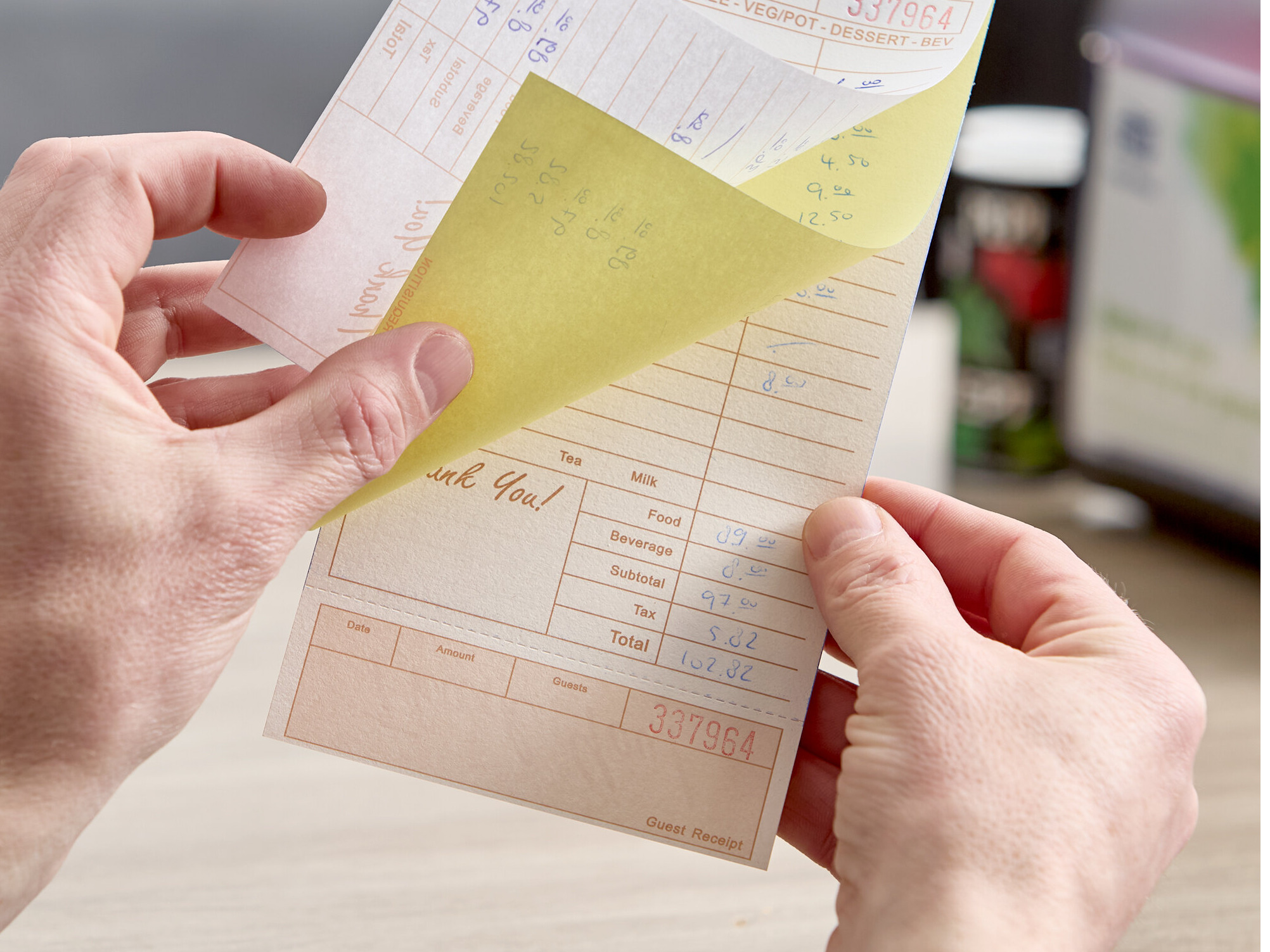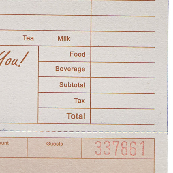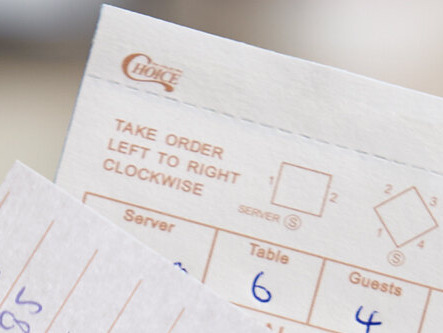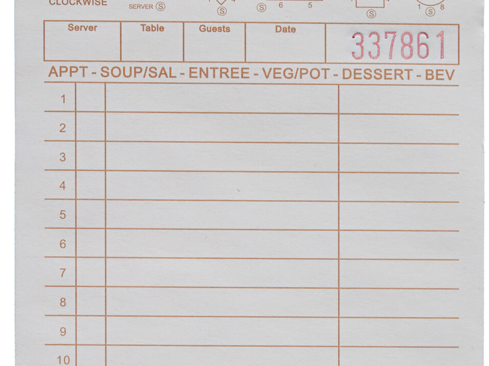 • Carbonless, three part design provides a guest check for the server, kitchen staff, and guest