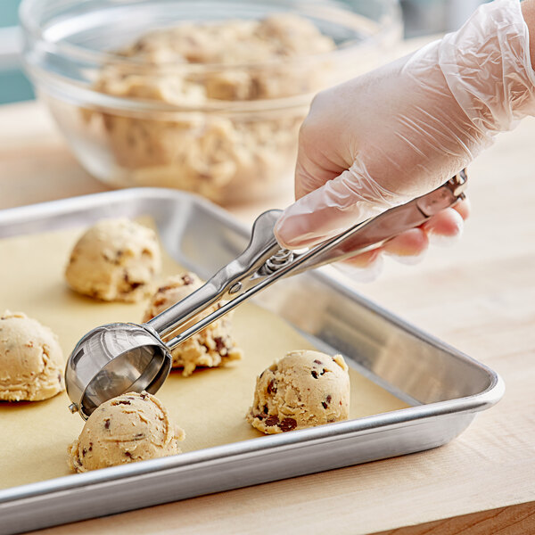 Scoop 1.25 oz. of soft foods such as cookie batter, rice, and potatoes with this Choice #30 round stainless steel squeeze handle disher.