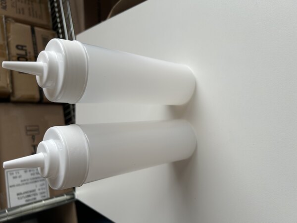 This bottle's versatile, simple design is ideal for both back-of-house and front-of-house applications. Serve a variety of condiments including ketchup, barbecue sauce, Buffalo sauce, or even olive oil and salad dressings. It's also ideal for drizzling chocolate and caramel sauces on your signature drinks or desserts! Use it for quick visualization to help cut down on errors and reduce miscommunication in fast-paced establishments. Whether you're using it in your kitchen to complete your culinary creations or placing it in a self-serve area for guests to use, this Choice wide mouth squeeze bottle will make adding condiments to items a breeze.