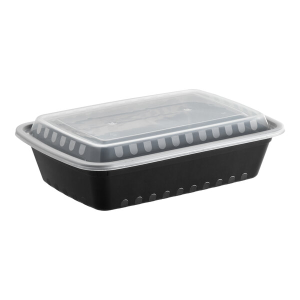 Choice 38 oz. Black Rectangular Microwavable Heavy Weight Container with Lid - 150/Case