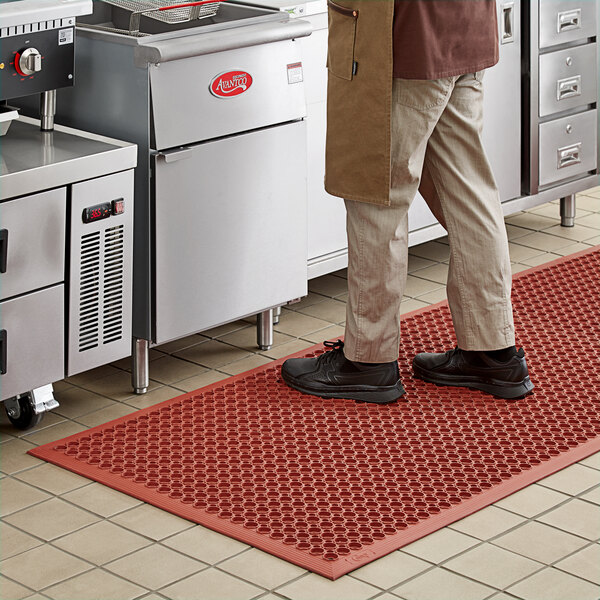 Create optimum workplace safety navigating ramps or wet ground and floor surfaces with this Choice 3' x 10' red rubber anti-fatigue floor mat with beveled edge.