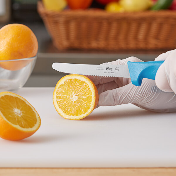 Choice 4 1/2" Serrated Edge Utility / Bar Knife with Blue Handle