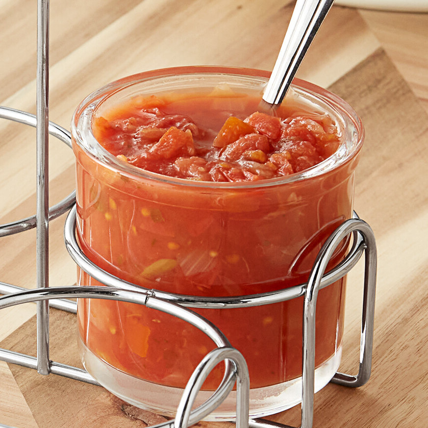 This holder is at home on either a condiment table at a burger stand to allow customers the chance to spice up their own fries or on the table at an upscale restaurant serving gourmet salads and dressings. This is perfect for use at your restaurant, buffet, carnival stand, or banquet hall!