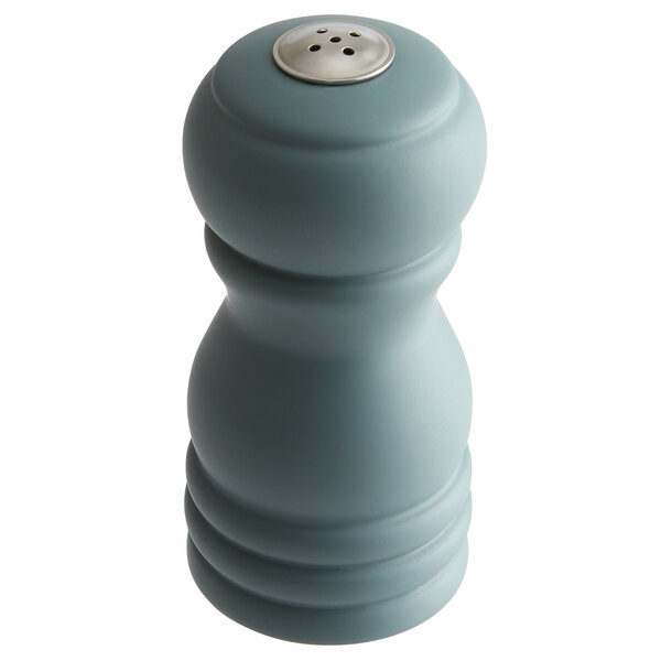 This salt shaker features a modern matte steel blue finish, great for adding a contemporary touch to any setting or occasion. It's also easy to wipe clean, ready for use in busy restaurants.