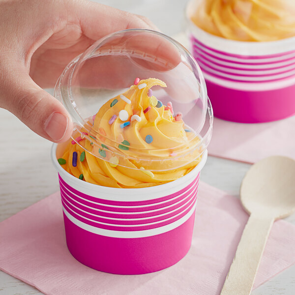 Choice 4 oz. Pink Paper Frozen Yogurt / Food Cup with Dome Lid - 50/Case