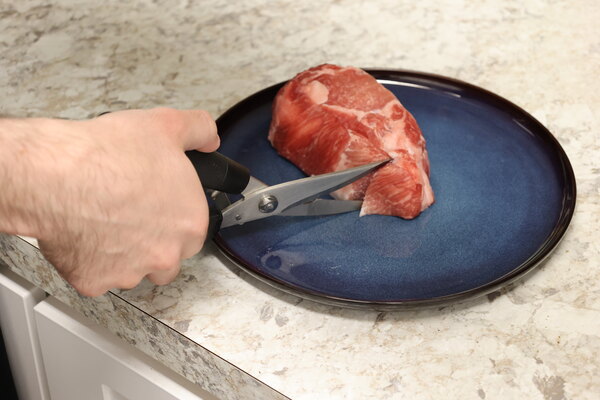 These are very sharp and can cut through an inch of meat with it still maintaining a clean cut. My only issue is that the scissors open very wide so if you have small hands it may be hard to use in some situations or when picking it up while it's open.