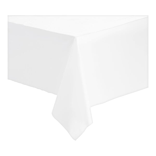 This table cover is designed to offer superior protection from spills and messes without sacrificing appearance. Its crisp white color adds a stylish touch to any decor and coordinates easily with other unique decorations to match your event's theme or atmosphere. Made of durable plastic, this table cover is latex-free and built to last through an entire event.