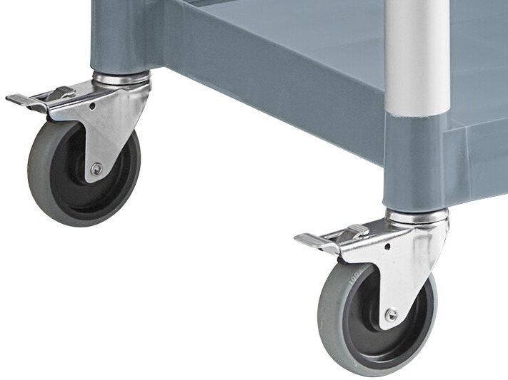 This utility cart features four 4" swivel casters with two brakes that allow you to maneuver around furniture and corners with ease.