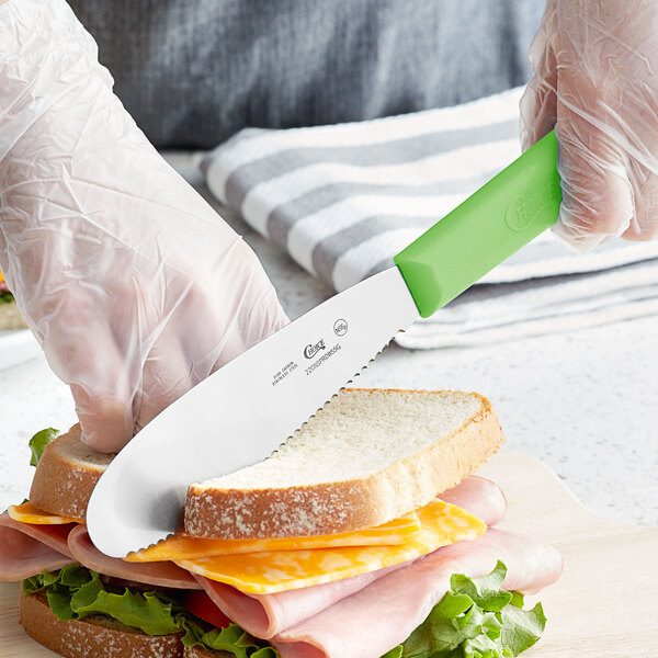 Featuring a versatile neon green color, this spreader is an ideal addition to your color-coded kitchen operation.