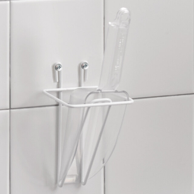 By hanging the scoop on the holder, it keeps your scoop cleaner since it stays out of bins and off of tabletops. This also helps prevent scoop damage so you won't have to spend as much money on replacements.