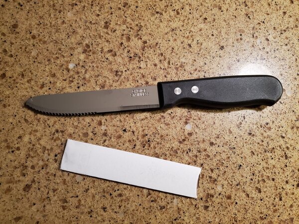 This is a great steak knife. The only take back is that it is pretty heavy. I like the black handle, it makes it easier to hide grease stains.