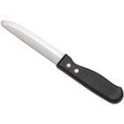 This steak knife features a lightweight, ergonomic polypropylene plastic handle. The handle's standard black color offers a classic look as well as the simplicity of matching any table setting. Choose this Choice knife to satisfy your budgetary requirements while providing your guests with an appealing and practical utensil.