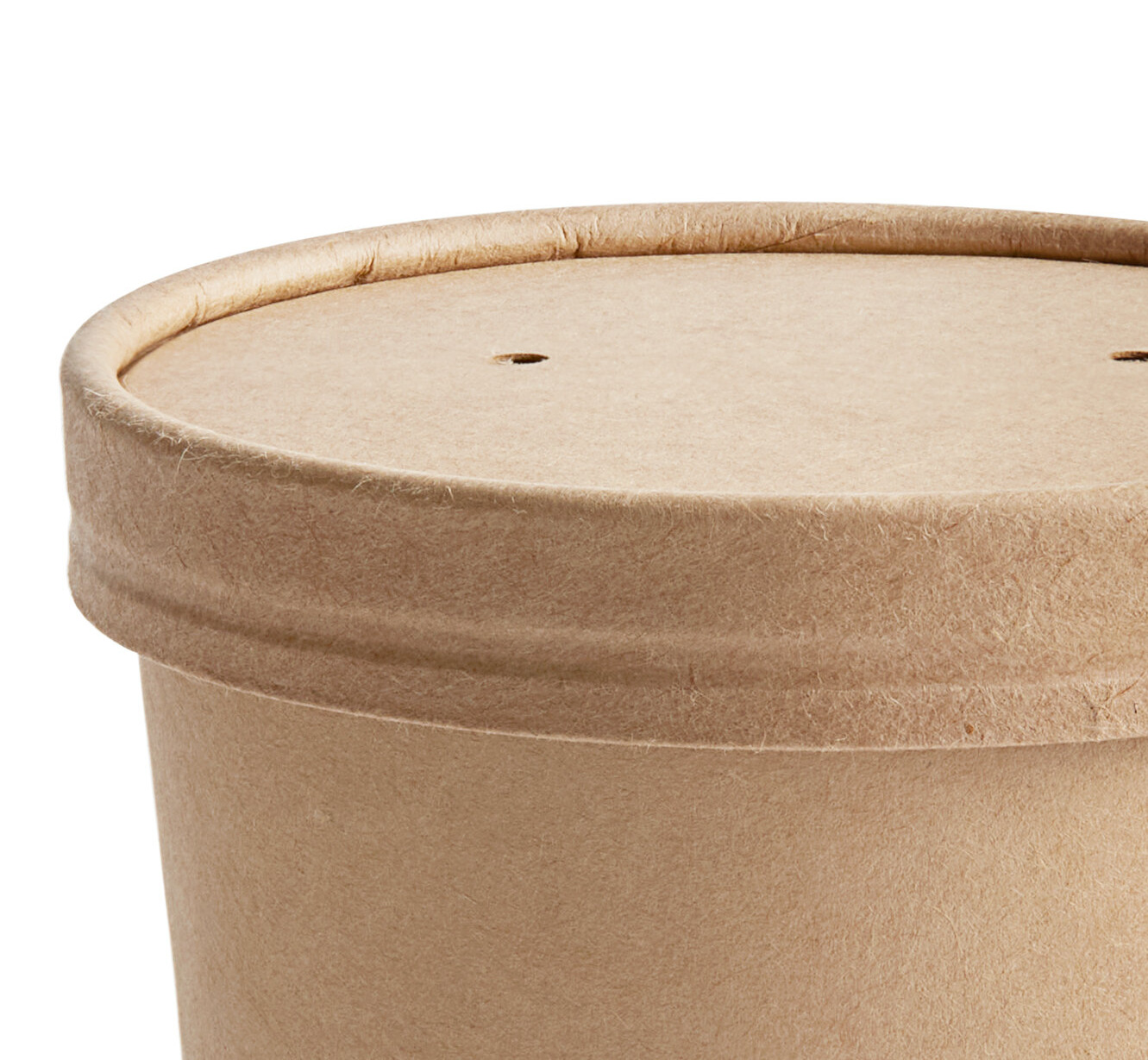 Made from poly-coated paperboard, this cup is durable and moisture-resistant, allowing it to hold liquids and hearty foods without leakage. It features a tightly-rolled rim that guarantees a secure fit with the included lid. The lid features a vented paper construction, which allows hot, moist air to escape, ensuring your offerings don't become watered down.