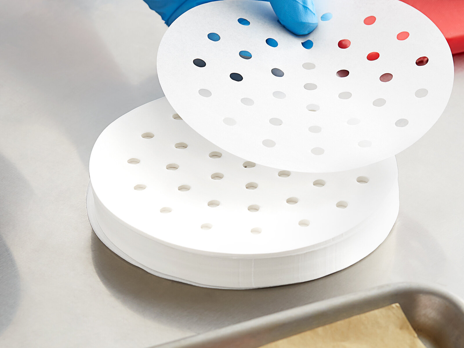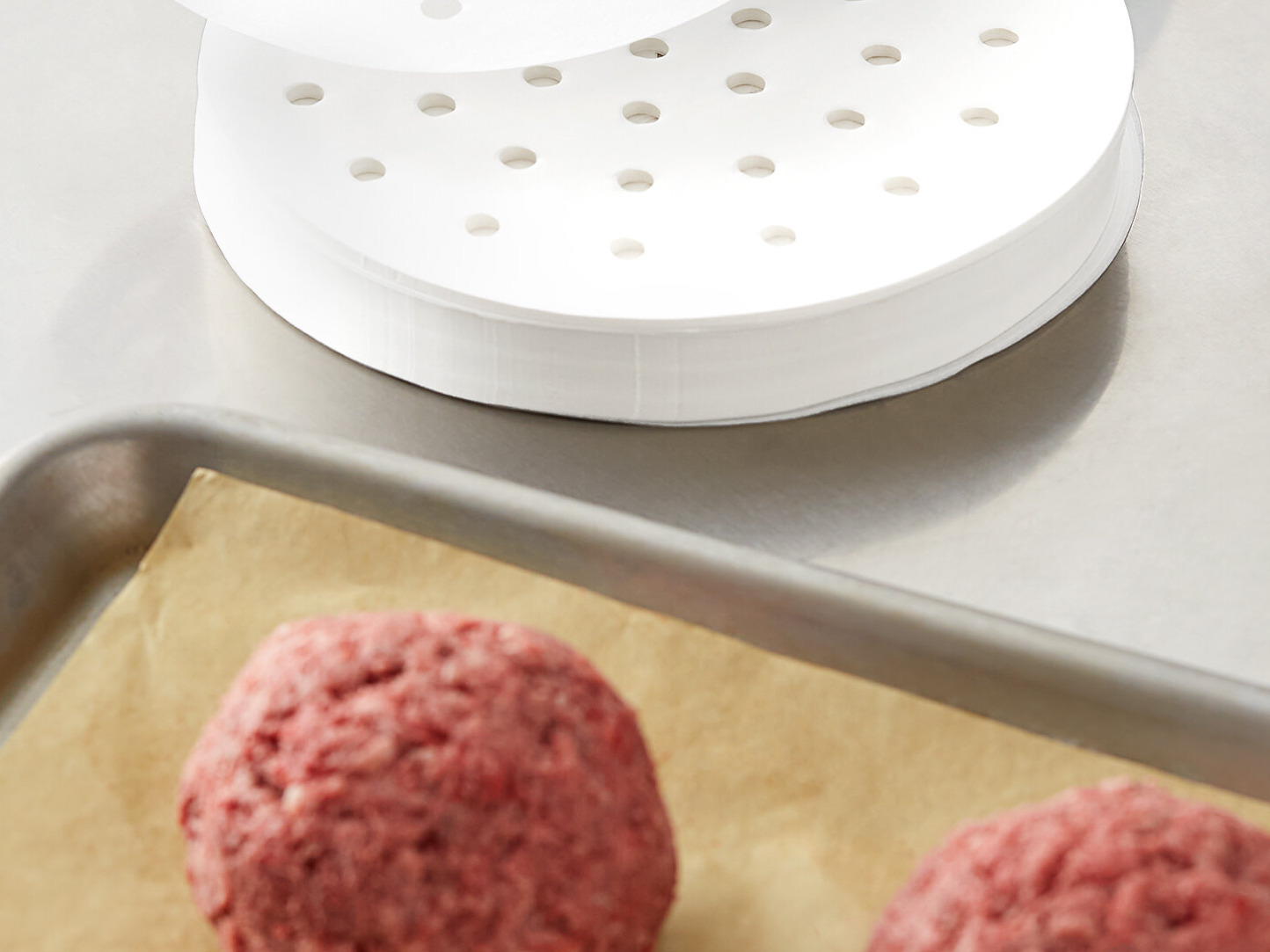 With perforations, the paper won't stick to the patty as much as other paper can, making the patty-making process quicker and easier. Plus, the holes allow for moisture and grease to escape to prevent it from becoming waterlogged.