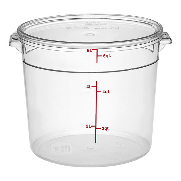 - Item #: 176rnd6c12csChoice 6 Qt. Clear Round Polycarbonate Food Storage Container with Lid - 12/Case