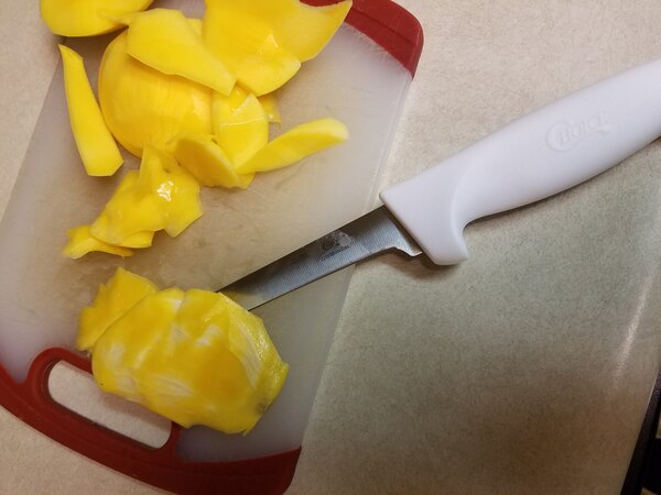 Great knife with comfortable grip and really sharp. This is my new mango knife. Typically I left some fruit on my mango bones but not anymore. The knife strips everything off the bone.