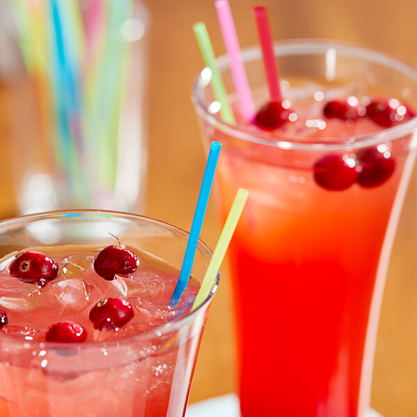 Customers appreciate these neon beverage stirrer/sip straws for their vibrant colors and versatility, finding them perfect for both stirring and sipping in various settings like bars, parties, and home use. They are praised for their good length, durability, and the fun element they add to drinks, making them a popular choice for enhancing beverage presentation.