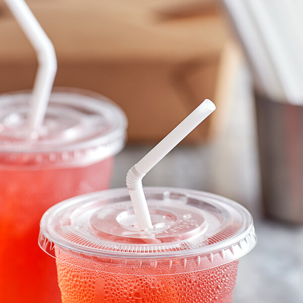 Great for use with kids' cups, take-out drinks, or healthcare applications, this classic white flex straw is a versatile addition to your restaurant, break room, or cafeteria. With its simple design, you can use it in a variety of settings to provide your customers with a sanitary, convenient companion to their favorite drink!
