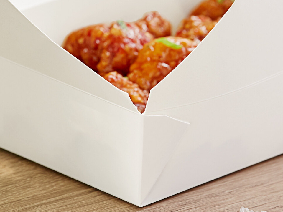Featuring an attractive, folded design, this container is perfect for boxing up both hot and cold foods. The #3 size is ideal for housing sides and desserts. Plus, the SBS paperboard construction provides added durability. Holding up to 66 fl. oz., this container is ideal for your heavy, fried or sauce-soaked foods.