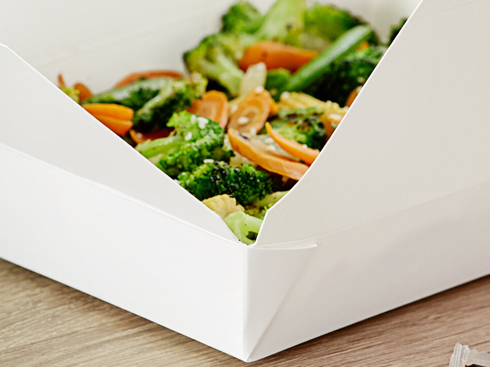 The Kraft Microwavable Folded paper take-out containers are good for hot and cold foods. The containers have a seal that reduces and eliminate leakage. I suggest using the folded paper containers for salads.