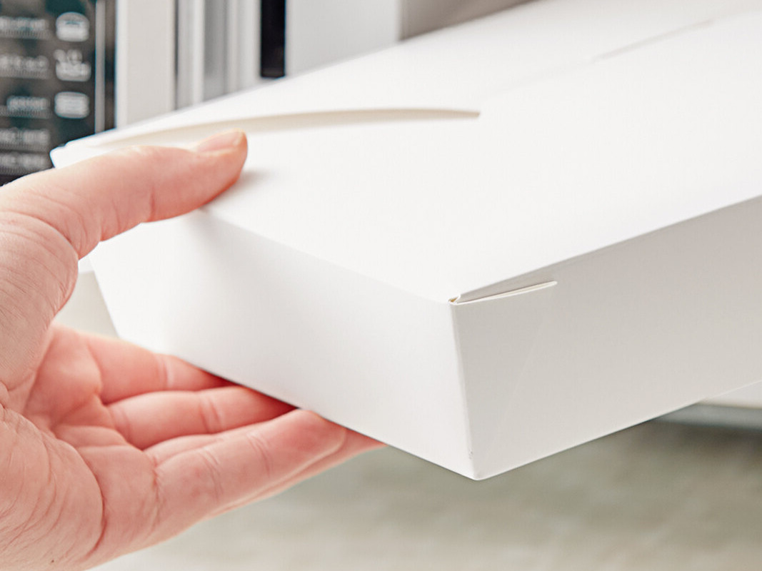 • Made out of SBS paperboard with a classic, white exterior