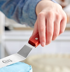 This spatula comes with a stunning wooden handle that will elevate any kitchen. It is the ideal tool for frosting cakes or spreading crepe batter. Use it in your bakeries and cake shops to create smooth, professional presentations every time!