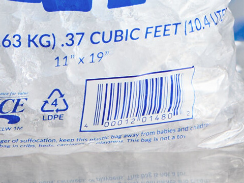 Thanks to the barcode at the bottom, employees can easily ring out customers' ice bags at the register.