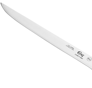 Excellent knife for slicing of prime meats and seafood. Cuts clean through each piece and sharpens easily. Cleaning is easy with good clearance in a sanitizer or manually cleaning with a sponge.