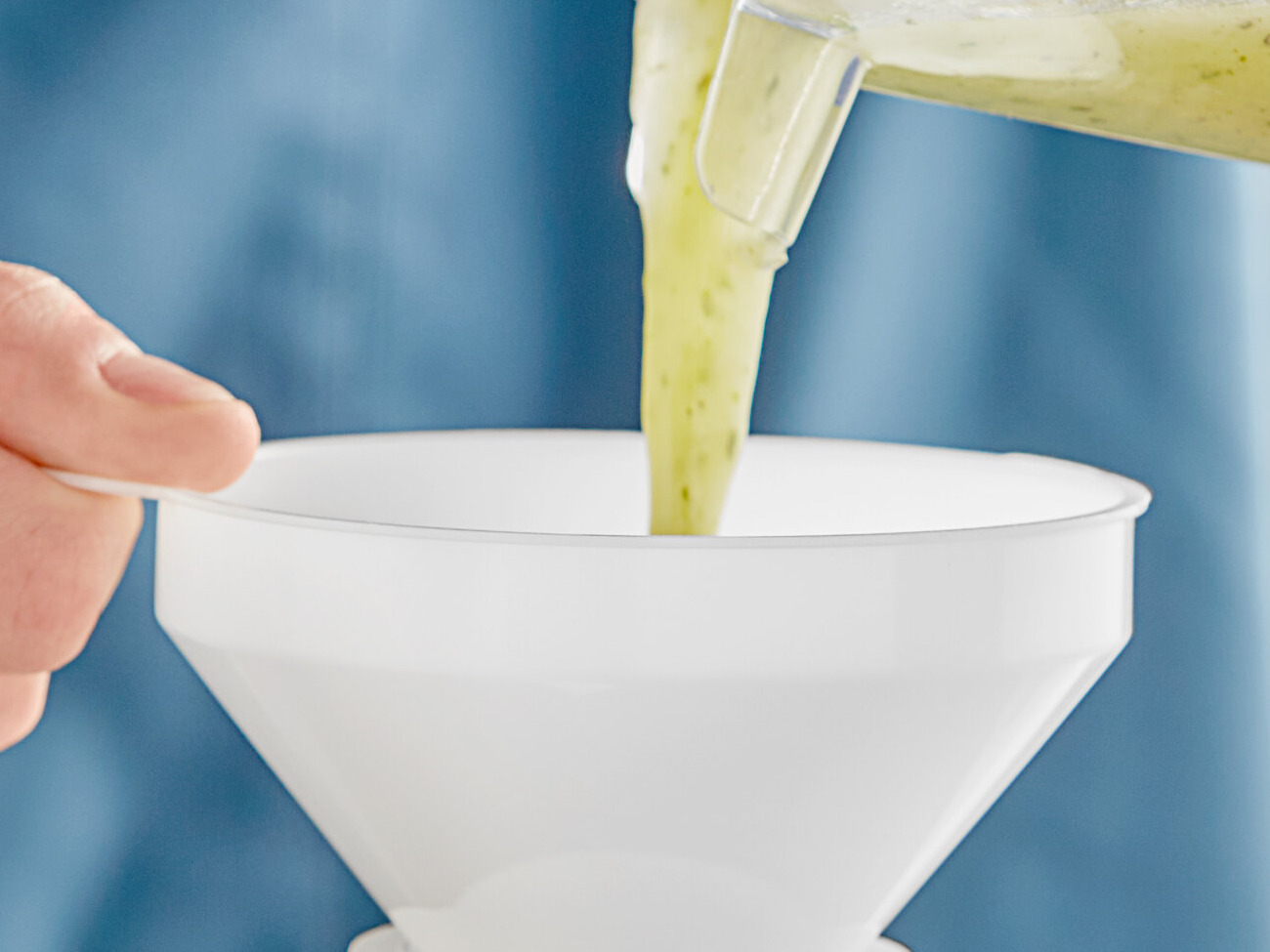 We use our "1 Qt. Plastic Funnel " alot. In the end we actually cut the bottom of it off so that thicker sauces can drain into a bottle easier, great value for money