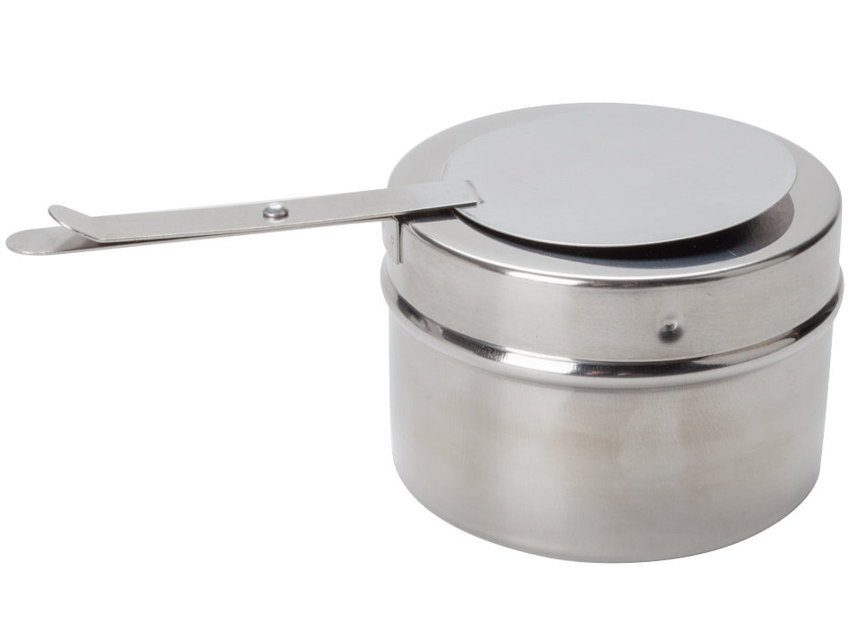 This chafer also includes two fuel can holders for safe handling of the can and protection of the flame.