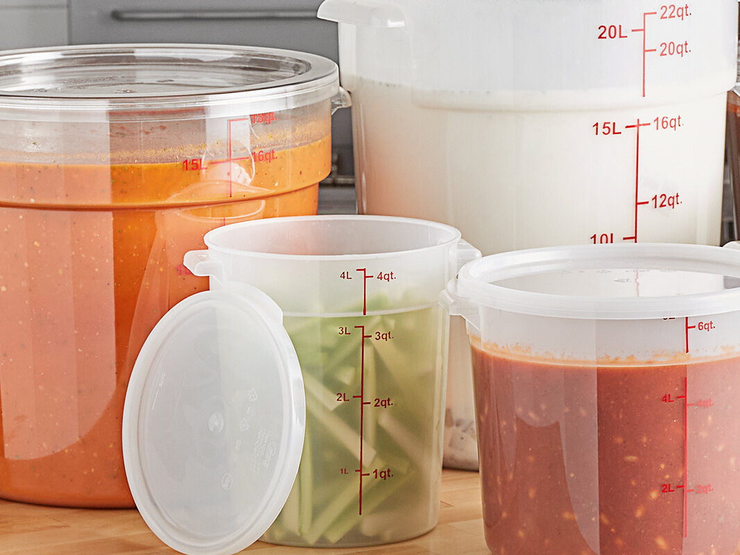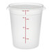 Whether storing dry goods or prepped ingredients, this container is versatile and can handle temperatures ranging from -40 to 160 degrees Fahrenheit, making it ideal for a wide range of kitchen tasks. This Choice white round polypropylene food storage container with lid is perfect for restaurants, catering establishments, delis, and cafes that want to enhance their service and streamline their prep organization!