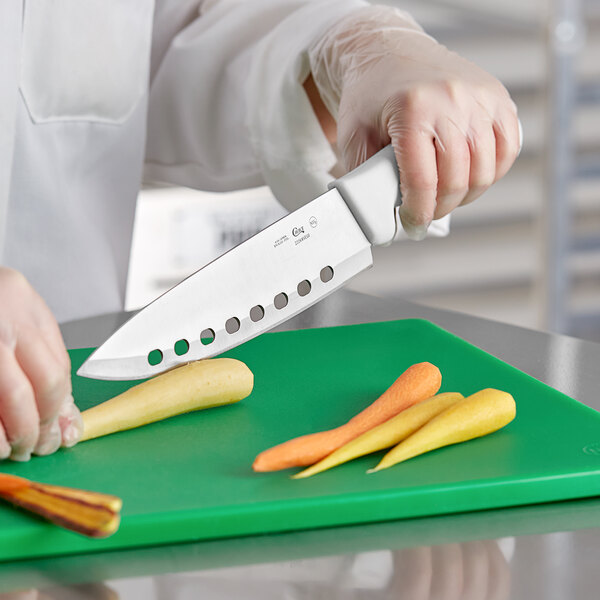 Give your kitchen an extra edge with this Choice 8" vegetable knife with white handle.