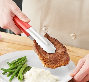 The assorted color handles allow them to be used as part of a HACCP or other color-coded system to help reduce the risk of cross-contamination in your kitchen. Assigning a particular color tongs to a specific application will help prevent the spread of foodborne illnesses and create a more organized workflow for your staff.