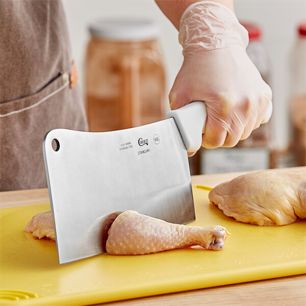 I’ve never used a cleaver before and holding this knife made me regret that instantly. The heft of the blade instills confidence while the handle is comfortable and natural. I like the poly handle for cleanup and ability to grip even when you’ve been handling fatty meats. The height of the blade gives you a lot of room to guide chopping with your knuckles and keeps your fingers far away from the edge. Again the weight of the blade assures enough momentum to handle poultry bones in one chop. With the very inexpensive price this is a no-brainer.