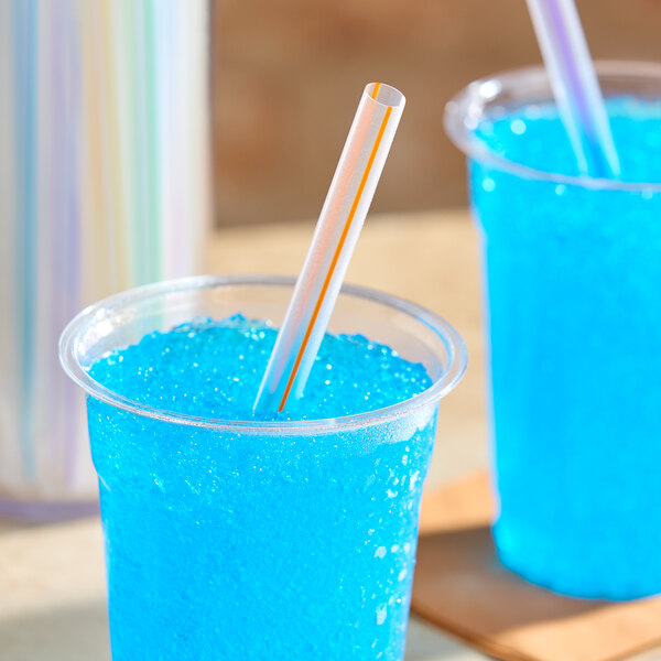Choice 9" Multicolor Stripe Pointed Unwrapped Smoothie Straw - 3,500/Case