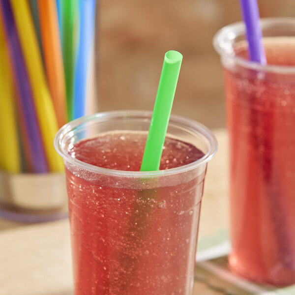 Straws are available in a variety of diameters based on their intended purpose and function. Cocktail straws are approximately 3 mm in diameter and used for cocktails and sipping on hot drinks. Jumbo straws are often the standard size for various beverages and measure around 6 mm. Super jumbo straws are also around 7 mm in diameter and some even feature built-in spoons for thick drinks. Milkshakes are great for drinking out of giant straws thanks to their 8-10 mm diameters. Within this category, smoothie straws are typically 10 mm in diameter, perfect for thick, blended drinks with fruit pulp. Colossal straws, at approximately 12 mm in diameter, are perfect for frozen concoctions. Finally, boba straws feature an extra-wide 13 mm diameter, specifically designed to accommodate the large tapioca pearls in bubble tea.