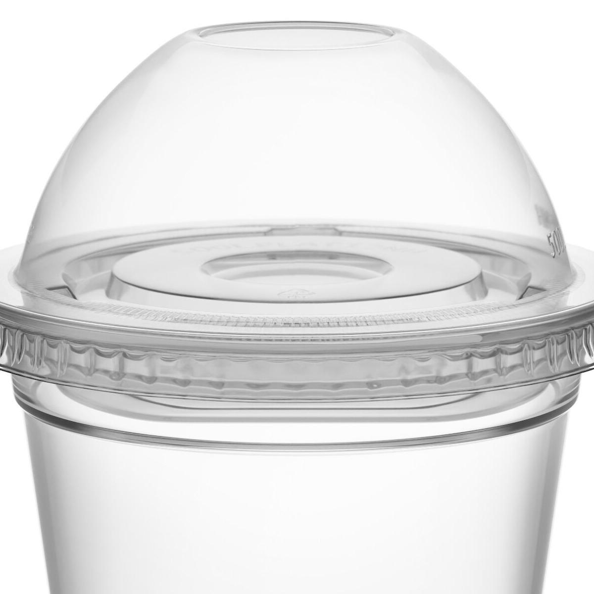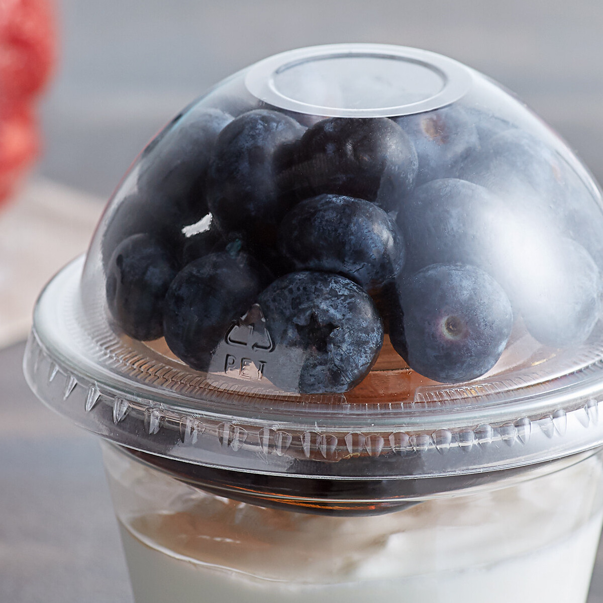 This dome lid creates a tight seal when used with the compatible cups, keeping contents fresh. This, combined with its no hole design, prevents spills and leaks. It is also made of recycled PET material making it an environmentally friendly choice, and its dome shape creates a greater capacity for contents.
