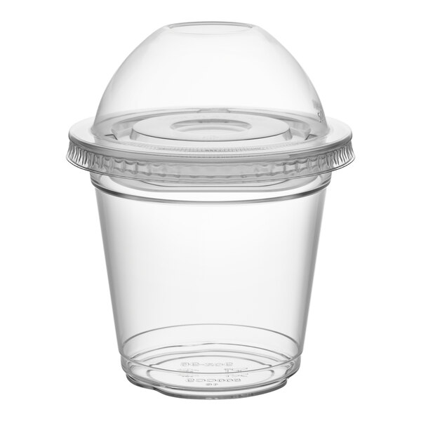 Take on-the-go snacking to the next level with this Choice 9 oz. plastic cold cup with 2 oz. insert and PET dome and flat lids with no hole.