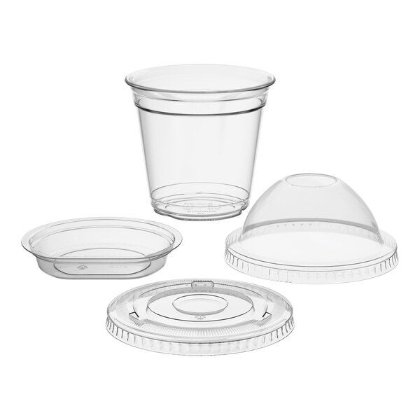 Choice 9 oz. Clear Plastic Squat Cold Cup with 2 oz. Insert and PET Dome and Flat Lids with No Hole - 100/Pack