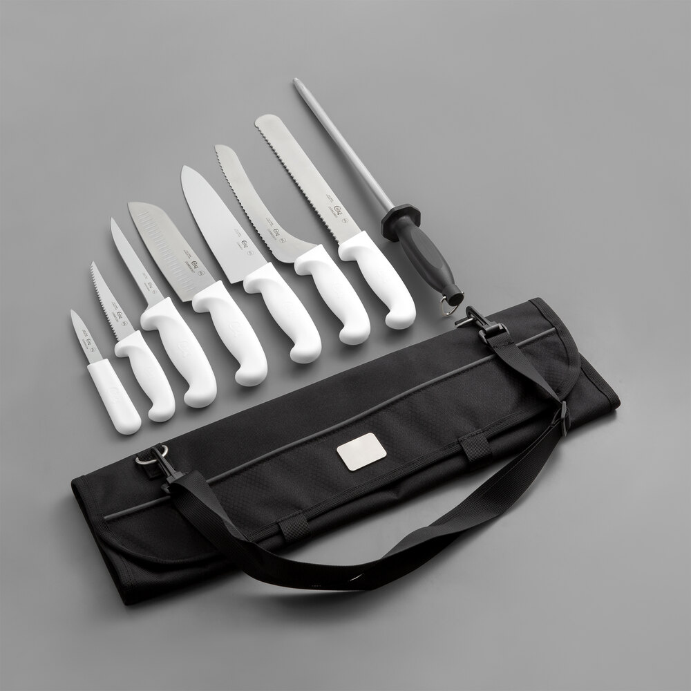 Have worked as a chef most of my life (57 now) last place was Part owner of a B&B started my knife collection in High school had all high end knives, Lost every thing in a divorced bought your Choice 18 Piece White knife set to use while I replace one at a time when I received the set it was a lot higher quality than I thought. Very nice selection for different use Knives. For the money its a very nice set.